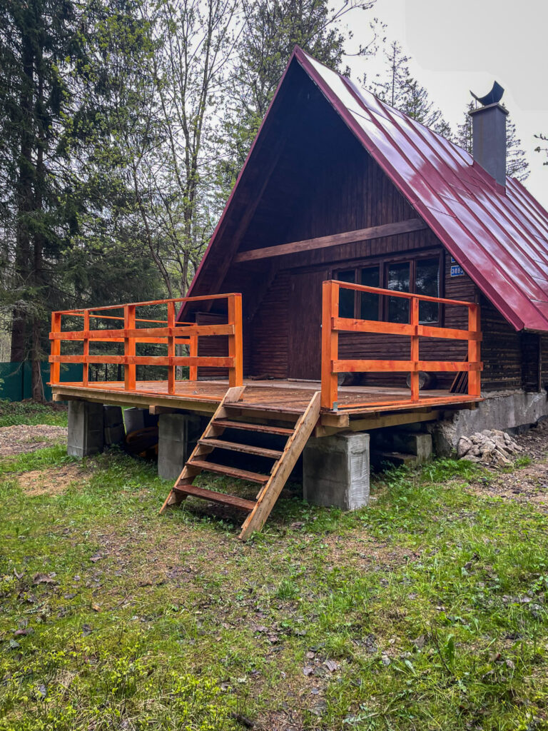 Chata disponuje terasou, kde si můžete užít klidné ráno nebo večer s příjemnou atmosférou. Uvnitř najdete nově zrekonstruovanou koupelnu, indukční vařič pro pohodlné vaření, malou lednici na uchování vašich zásob a krbová kamna, která se postarají o příjemné teplo a útulnou atmosféru. Navíc je zde tradiční pec, kterou můžete využít jak k vaření, tak k vytápění celé chaty.